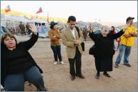 Aux alentours de la Mine San José, a été monté un grand campement où vivent les parents des mineurs ensevelis et le personnel chargé du sauvetage. C’est là que le cardinal Francisco Javier Errázuriz, a de nouveau remercié Dieu pour ce « cadeau », celui d’avoir permis de retrouver vivants ces travailleurs. Le cardinal a eu aussi l’occasion de converser téléphoniquement avec les mineurs.