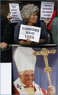 Ce que je peux dire, c'est que dans la zone réservée aux protestations, près du parcours du pape , sur quelques 70 emplacements "démocratiquement" réservés pour les manifestants, il y avait au plus une dizaine de jeunes agitant des préservatifs . N'oubliez pas qu'en 82 , pour Jean-Paul II, il ya eu de nombreuses protestations et tout autant, sinon plus véhémentes , il faut donc s'habituer à regarder l'Eglise et la papauté à travers les yeux de l'histoire .