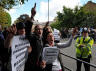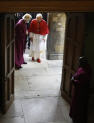 Toutes ces photos sont issues des pages Papacy and the Vatican on yahoo. Un espace inimaginable était réservé aux photos de manifestants caricaturaux, en maigres troupes comme en témoignent les cadrages intentionnellement très serrés, mais très voyants avec leurs grosses pancartes.