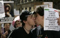 Jason, un jeune-homme blond de 18 ans, est venu pour manifester contre le veto de l'Eglise à l'utilisation des préservatifs et distribue tracts et préservatifs à côté du cortège. «Des milliers de personnes meurent chaque jour parce que le Vatican interdit l'usage des préservatifs», proteste-t-il.