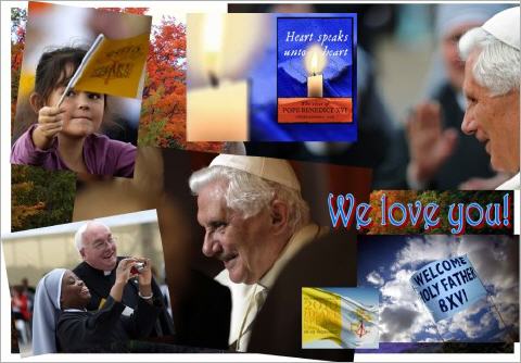 Non, à Londres, hier, il n'y avait pas que des "contestataires", mais surtout beaucoup d'affection et de ferveur. Un beau collage de Gloria (19/9/2010)