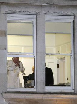 De retour à la nonciature apostolique , après la veillée de prière avec 100 000 personnes à Hyde Park , Benoît XVI a voulu apparaître à une fenêtre du bâtiment qui donne sur l'extérieur, pour saluer les groupes de fidèles qui étaient là pour l'applaudir.