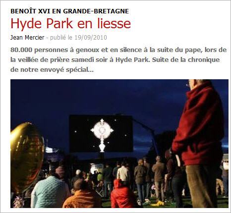 On savait déjà que le but du pontificat de Benoît XVI était de reconduire les croyants à la personne de Jésus et de “dé-stariser” la fonction pontificale. Ce soir, à Hyde Park, on peut dire qu'il a réussi son pari.