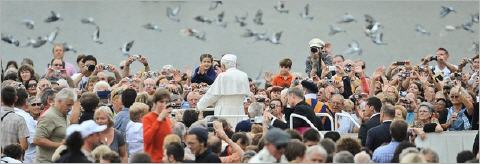 Aujourd'hui, je voudrais revenir sur la visite apostolique au Royaume-Uni que Dieu m'a donné d'accomplir ces jours derniers. Ce fut une visite officielle et en même temps , un pèlerinage au cœur de l'histoire et du présent d'un peuple riche de culture et de foi , qui est le peuple britannique. Il s'est agi d'un événement historique qui a marqué une nouvelle phase importante dans l'histoire longue et complexe des relations entre ces populations et le Saint-Siège . Le but principal de cette visite était de proclamer Bienheureux le Cardinal John Henry Newman , un des plus grands anglais de ces derniers temps ,éminent théologien et homme d'Église . En effet , la cérémonie de béatification a représenté le point culminant du voyage apostolique, dont le thème était inspiré par la devise cardinalice du bienheureux Newman : "Le cœur parle au cœur". Et dans les quatre journées intenses et très belles passées dans cette noble terre , j'ai pu avoir la grande joie de parler au cœur des habitants du Royaume-Uni , et eux ont parlé au mien, en particulier par leur présence et le témoignage de leur foi . En effet, j'ai pu voir combien l'héritage chrétien était encore fort et toujours actif dans toutes les couches de la société . Le cœur des britanniques et leur existence sont ouverts à la réalité de Dieu et il y a de nombreuses expressions de religiosité que ma visite a encore plus mises en évidence .