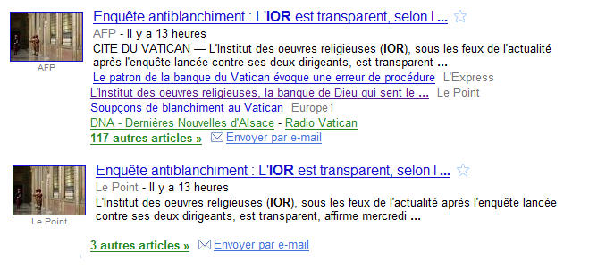 Le Monde.fr publie à l'instant un article assez révélateur intitulé Le Vatican a toujours un problème à régler avec Mammon: