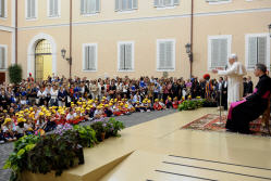 Et, plus récemment, en mai 2009, où, recevant les enfants de l'Oeuvre Pontificale pour l'Enfance missionnaire, il leur disait avec ingénuité (cf. https://www.benoit-et-moi.fr/archives/2009-II/...):