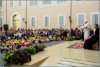 L'audience s'est déroulée dans la cour intérieure du palais apostolique, en présence des parents et des enseignants qui ont assuré le Pontife de leur proximité dans la prière quotidienne pour son ministère.