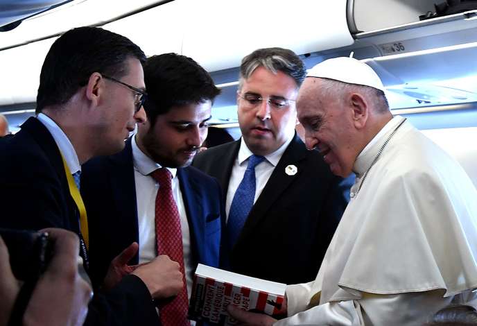 Devant l’émoi soulevé par la phrase de François à l’arrière de la cabine de l’avion papal, où sont installés les journalistes, les collaborateurs du pontife jésuite, installés avec lui à l’avant, ont tenté d’en atténuer le caractère belliqueux, quelques instants plus tard. Le nouveau directeur de la salle de presse, Matteo Bruni, a présenté une déclaration indiquant que, « dans le contexte informel » des salutations du début du voyage, « le pape a voulu dire qu’il considère toujours comme un honneur les critiques, en particulier quand elles viennent de penseurs reconnus et, dans ce cas, d’une nation importante ».