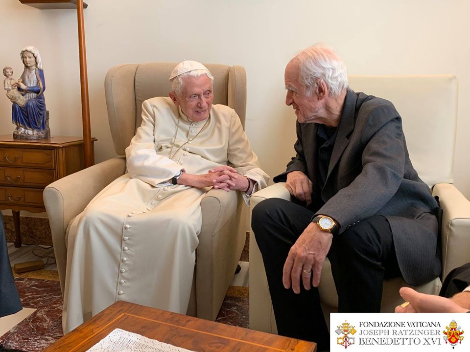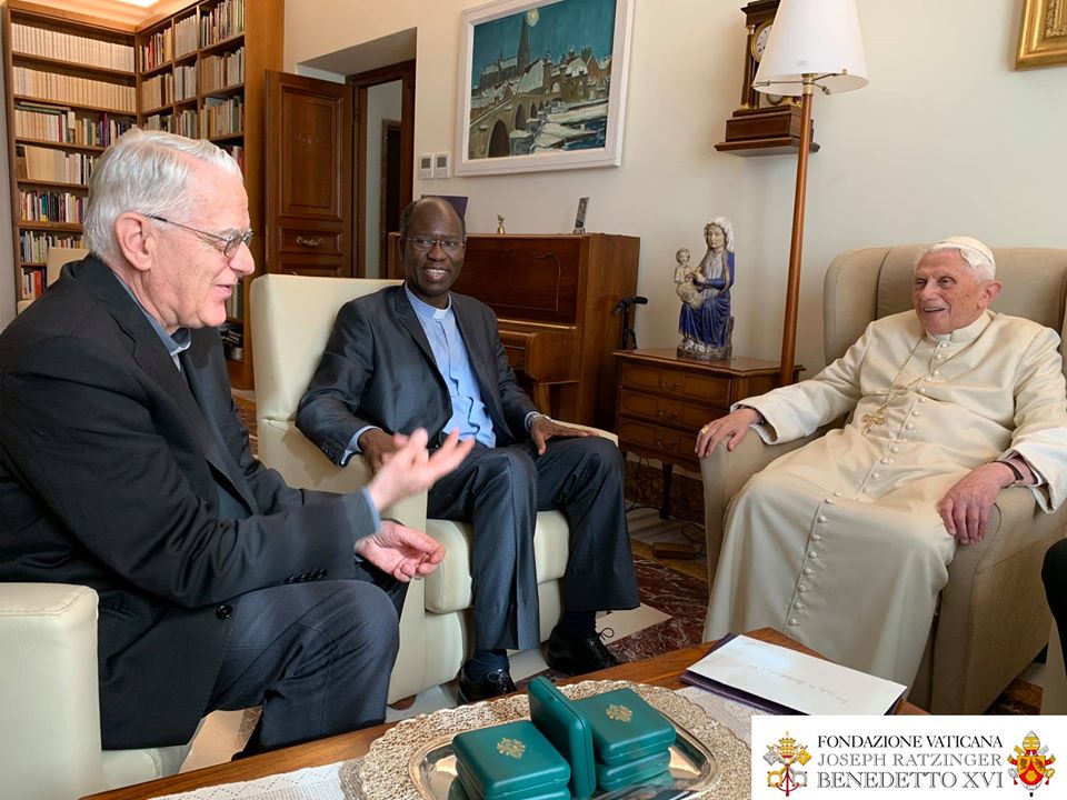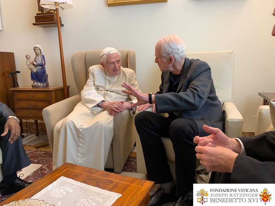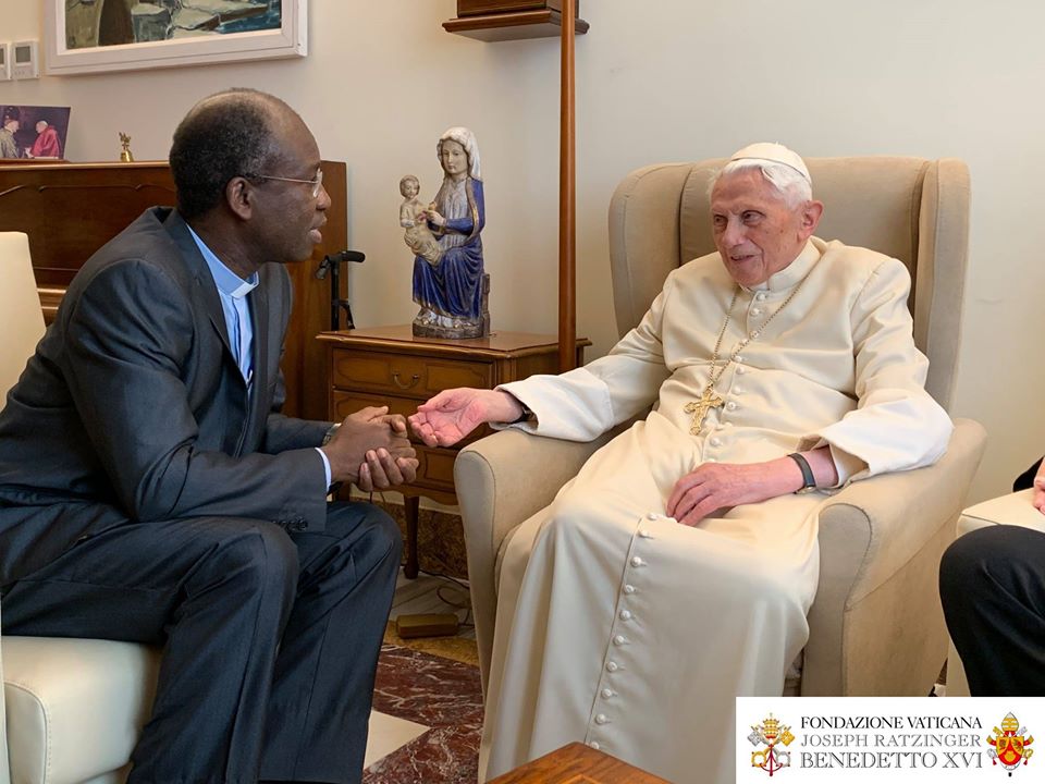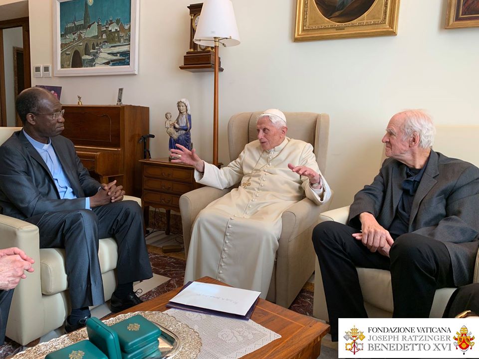 Le Pape émérite a reçu le 10 novembre, à Mater Ecclesiae, le Canadien Charles Taylor et le burkinabé Paul Béré accompagnés du P. Lombardi. Photos de la Fondation Vaticane Joseph Ratzinger/Benoît XVI .
