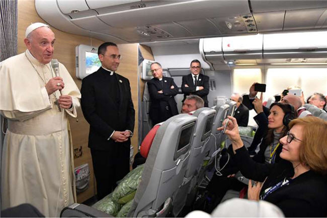 C’est une opportunité de prêcher l’évangile au monde entier par les canaux des médias. Ici, il a un avion rempli d’un public captif de journalistes du monde entier. C’est l’occasion de prêcher « le Christ crucifié » pour appeler le monde à la repentance et à la foi dans le Christ, pour inviter le monde entier à rencontrer la miséricorde aimante de notre Dieu….et il parle de tout SAUF de l’évangile.