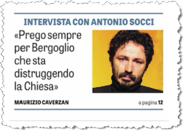 Le journaliste et écrivain Antonio Socci: « C’est un Pape conformiste, et ainsi, il aide la pensée unique anti-chrétienne. J’espère découvrir que j’ai tort et je me bats contre moi-même, mais jusqu’à présent… C’est avec douleur que j’écris sur cette situation »