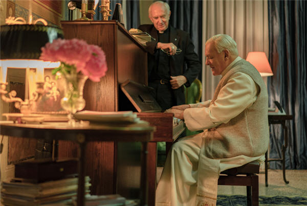 Nous parlons du film Les deux papes avec Anthony Hopkins (Benoît XVI) et Jonathan Pryce (François), ce dernier étant très ressemblant.
