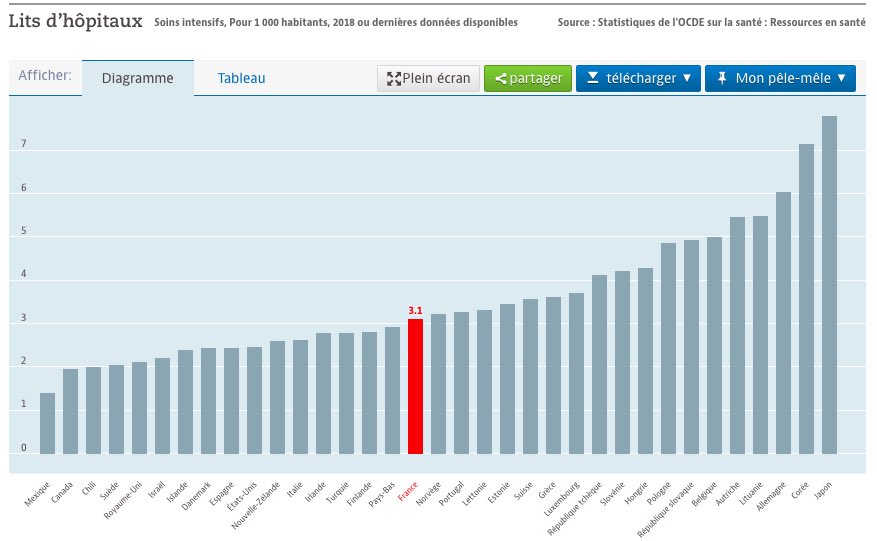 J’ai inséré dans ma traduction de son article des tableaux (pas tout à fait récents…) qui permettent de se faire une idée de la situation hospitalière dans les différents pays.