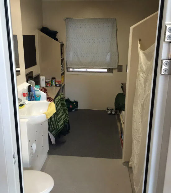 À Melbourne, je vivais dans la cellule 11, unité 8, au cinquième étage. Ma cellule mesurait sept ou huit mètres de long et environ deux mètres de large, juste assez pour mon lit, qui avait un sommier dur, un matelas pas très épais et deux couvertures. A gauche en entrant, il y avait des étagères basses avec une bouilloire, une télévision et un espace pour manger. De l’autre côté de l’allée étroite, il y avait une cuvette avec de l’eau chaude et froide et une douche avec de l’eau chaude de bonne qualité. Contrairement à ce qui se passe dans de nombreux hôtels chics, une lampe de lecture efficace se trouvait dans le mur au-dessus du lit. Comme mes deux genoux avaient été remplacés quelques mois avant mon entrée en prison, j’ai d’abord utilisé une canne et on m’a donné une chaise d’hôpital plus haute, ce qui était une bénédiction. Les règlements sanitaires exigent que chaque prisonnier dispose d’une heure par jour à l’extérieur, et à Melbourne j’ai donc été autorisé à faire deux demi-heures. Nulle part dans l’unité 8 il n’y avait de vitre transparente, donc, de ma cellule, je pouvais reconnaître le jour de la nuit, mais guère plus. Je n’ai jamais vu les onze autres prisonniers.