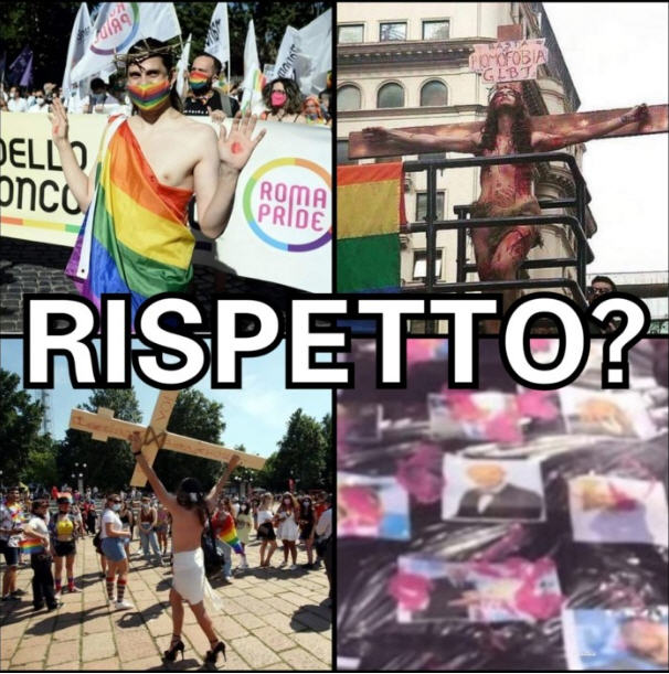 Si vous entrez dans les détails, vous vous rendrez compte que le blasphème, l’outrage à la religion, le blasphème et la profanation, autrefois placés pour protéger la religion, sont transférés de la même manière aux nouvelles catégories protégées : les Noirs [Neri] sans g au milieu, les féministes me-too, les « homotrans » et autres, les Roms et autres catégories mineures. Vous ne pouvez même pas faire une blague à leur sujet, c’est considéré et puni comme un blasphème. Vous pouvez raconter une blague irrévérencieuse sur Dieu (tant qu’il ne s’agit pas d’Allah), vous pouvez faire des blagues lourdes sur la Vierge et vous moquer de tous les saints, sans parler de leurs dévots et de leurs prêtres ; mais essayez de plaisanter sur l’une de ces catégories ou de les caricaturer. Vous vous attirez des ennuis, vous vous ruinez parfois à jamais, vous maculez votre dossier comme s’il s’agissait du péché originel. Des vies honorées, laborieuses et généreuses ont été compromises par une simple blague, un jugement, sur les Intouchables: le péché mortel a été appliqué à la lettre dans ces cas, avec toutes les mesures punitives appropriées. Ainsi, les lois concernant les délits d’opinion, renvoyées à la Nouvelle Inquisition séculière, la Congrégation du Saint-Office. La gay pride sera la prochaine Toussaint, à Noël nous célébrerons le bébé dans une éprouvette ou l’avorteur, à Pâques nous nous souviendrons non pas du Ressuscité mais du Trépassé, du Sauveur noir.