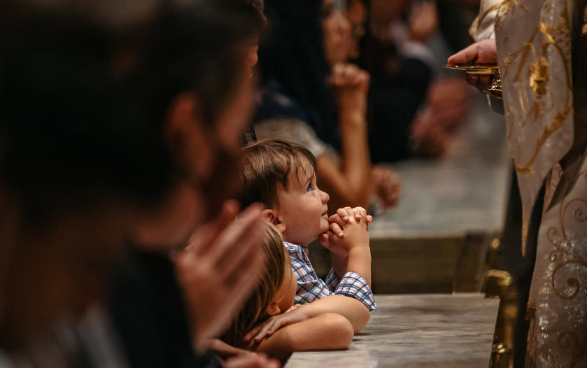 Lors de la messe pontificale célébrée dans la cathédrale-basilique des Saints Pierre et Paul de Philadelphie en la fête de l’Assomption, un tout petit garçon a été photographié au banc de communion. Ses yeux sont brillants d’attente : il a certainement été suffisamment instruit sur Notre Seigneur Jésus-Christ dans le Saint Sacrement.