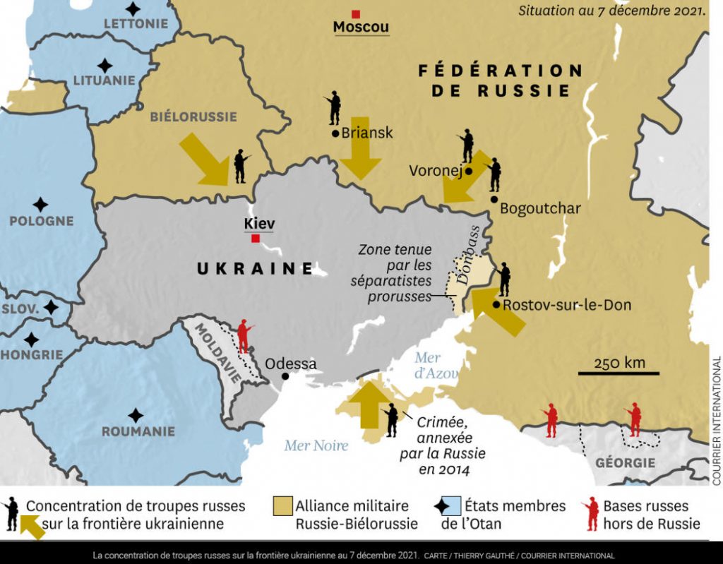 Moscou ne veut donc pas la guerre mais, dans le futur, l’adhésion de l’Ukraine à l’OTAN ou le déploiement de troupes de combat américaines et alliées sur le sol ukrainien ne laisserait guère d’alternative à la Russie.