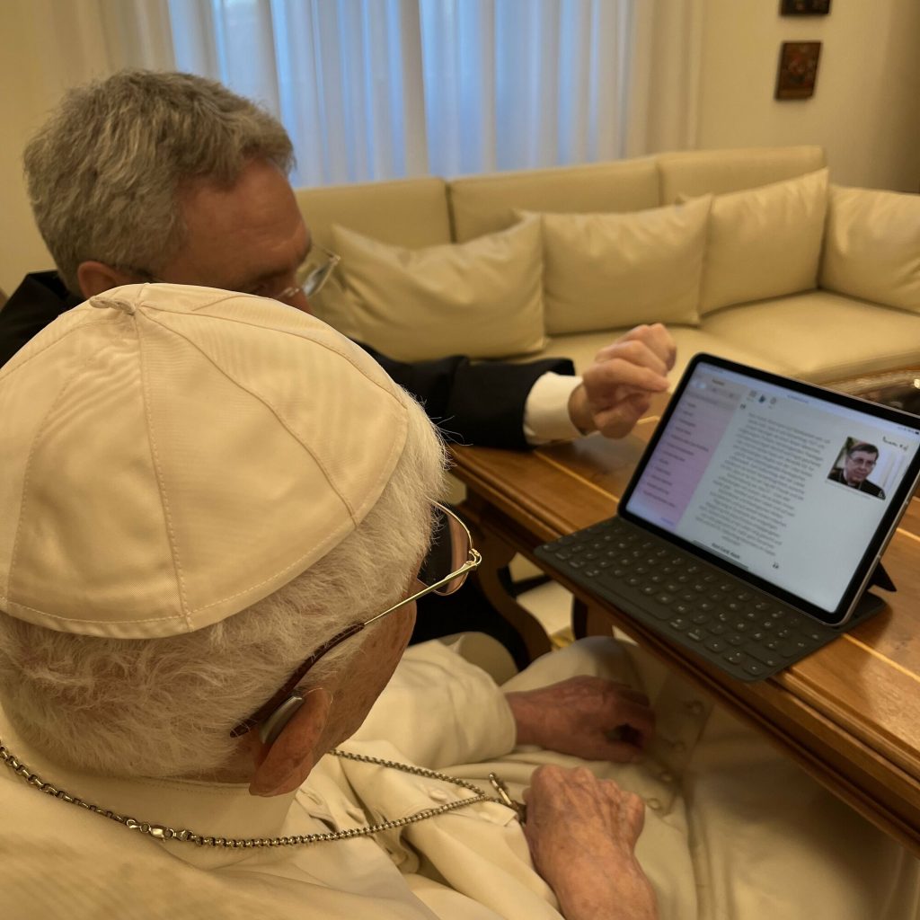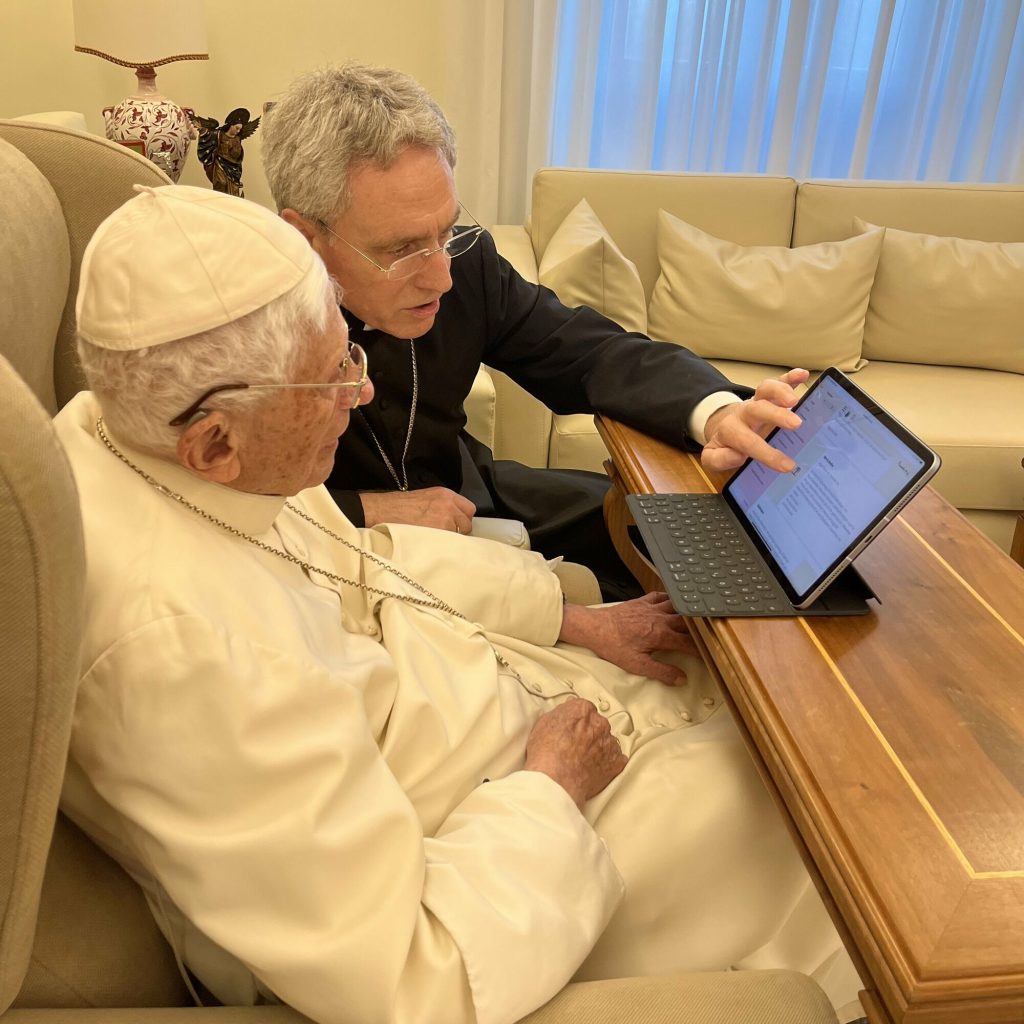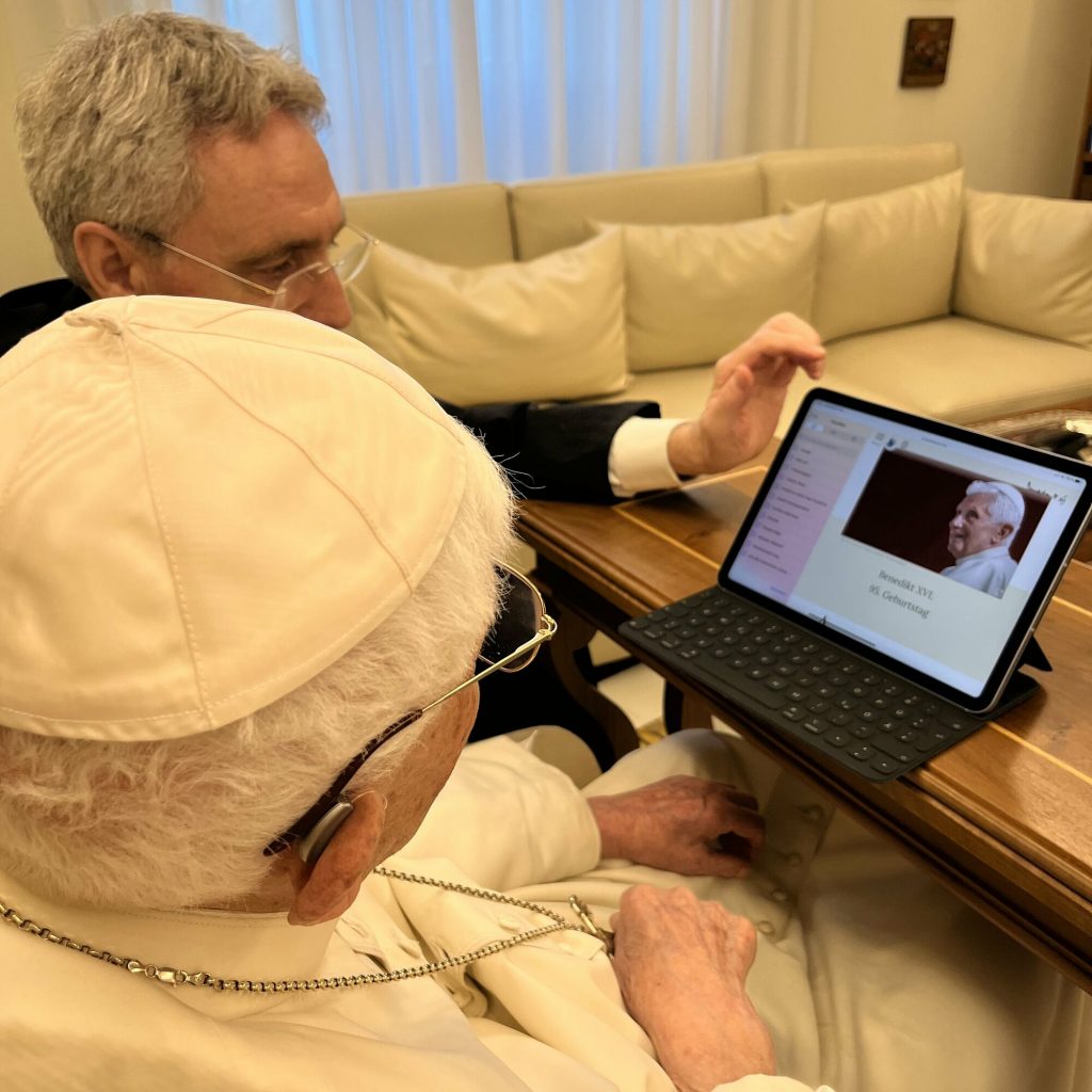 Le secrétaire particulier du pape émérite, l’archevêque Georg Gänswein, qui a aidé Benoît XVI à lire les messages d’anniversaire sur Internet, a écrit :