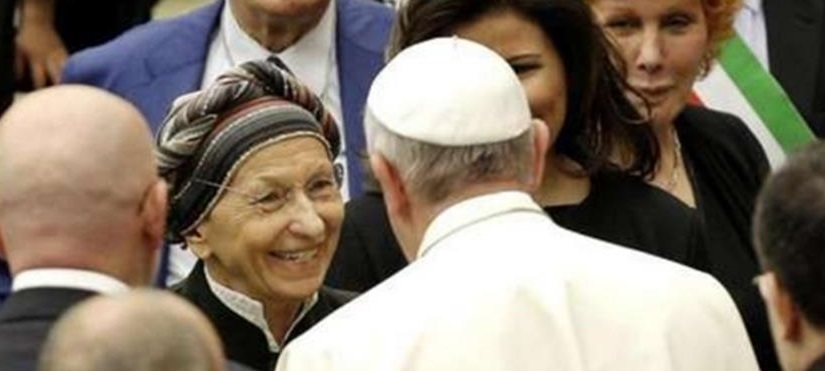 Emma Bonino avec le pape François, qui l’a félicitée comme une « très grande » et l’a exhortée à « persévérer ».