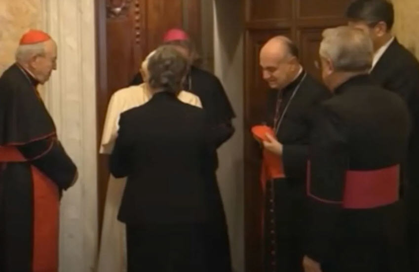 Le 28 février [2013], le jour où le Souverain Pontife avait décidé de quitter le Palais Apostolique pour se rendre dans sa résidence d’été de Castel Gandolfo, afin de permettre au Collège des Cardinaux de procéder à l’élection de son successeur, Angelo Comastri et le Vicaire pour la Ville de Rome, Agostino Vallini, ont été appelés pour le saluer.