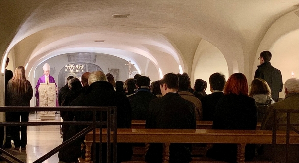 Ce matin, dans les grottes du Vatican, Mgr Georg Gänswein a présidé une concélébration eucharistique en suffrage de Benoît XVI, à l’occasion du premier mois de sa disparition.