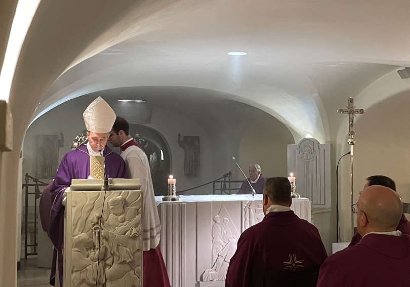 Ce sont les mots prononcés ce matin par l’archevêque Georg Gänswein dans son homélie lors de la messe pour le trigésime [/période de 30 jours] de Benoît XVI célébrée dans les grottes du Vatican à côté de la tombe du Pontife. Une cérémonie intime avec quelques fidèles, pour la plupart des personnes qui avaient travaillé avec le cardinal Ratzinger d’abord et le pape Benoît ensuite.