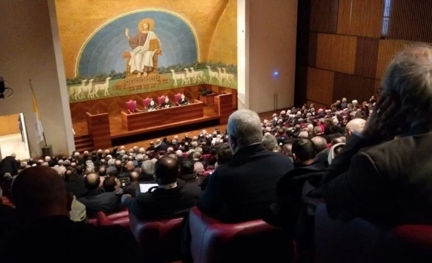 Tout d’abord, il faut souligner que l’évêque de Rome n’a pas assisté à la rencontre. Du discours de son » ambassadeur » Ghirlanda, la seule chose qui a été comprise, c’est que le pape est l’évêque de Rome. « Nous remercions beaucoup Son Éminence de nous avoir rappelé cet article du catéchisme de la première communion », a dit un prêtre [don Angelo] pendant que le cardinal parlait. Le jésuite a ensuite expliqué que, par essence, François est vraiment l’évêque de Rome. « Je m’excuse auprès de don Angelo, mais l’évêque de Rome n’est pas le vicaire, mais le pape », a-t-il dit.