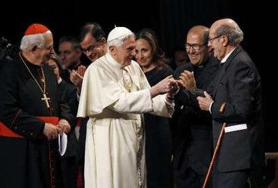 Cette heure demande le meilleur de nos forces, une audace prophétique, une capacité renouvelée à « indiquer de nouveaux mondes au monde », comme dirait votre Poète national (Luís de Camões, Os Lusiadas, II, 45). Vous, artisans de la culture sous toutes ses formes, créateurs de pensée et d’opinion, « avez, grâce à votre talent la possibilité de parler au cœur de l’humanité, de toucher la sensibilité individuelle et collective, de susciter des rêves et des espérances, d’élargir les horizons de la connaissance et de l’engagement humain. […] Et n’ayez pas peur de vous confronter avec la source première et ultime de la beauté, de dialoguer avec les croyants, avec ceux qui, comme vous, se sentent en pèlerinage dans le monde et dans l’histoire vers la Beauté infinie (Discours aux artistes, 21/11/2009).