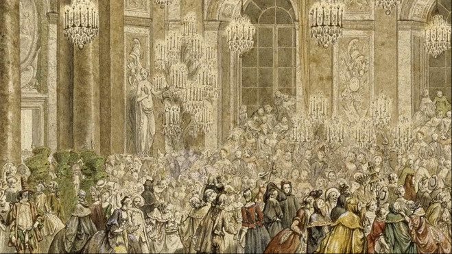 Ce matin, je lis sur le très bon blog de Maxime Tandonnet un billet intitulé LA FÊTE SANS LE PEUPLE (tout un programme!) qui m’épargne la peine de m’informer et raconte le dîner de gala donné en l’honneur de Charles dans la Galerie des Glaces à Versailles. Si je savais dessiner, j’aurais fait une « vignette » représentant Louis XVI, au ciel (où il est, à n’en pas douter) observant la scène à la lorgnette et disant quelque chose comme « Tout ça pour ça ».