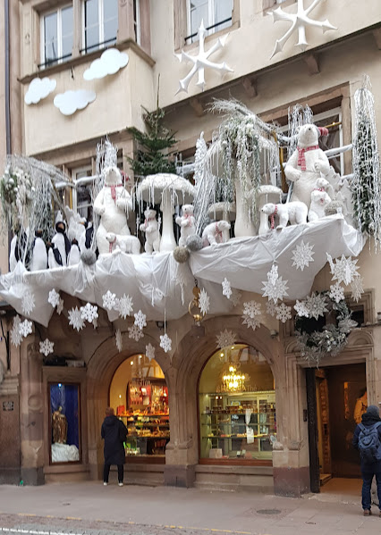 (*) Soyons justes, et reconnaissons que malgré tout, Strasbourg sait être magique (si l’on écarte la dimension religieuse) dans les derniers jours précédant l’ouverture du marché: les chalets sont fermés, les rues sont presque vides, et les commerces traditionnels autour de la cathédrale, rivalisent d’imagination pour parer leurs devantures de leurs atours les plus somptueux et les plus festifs.