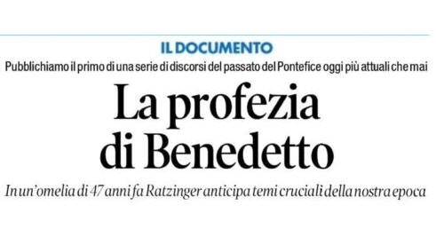 Le quotidien conservateur italien Il Tempo vient de re-publier (en première page!) ce texte magistral, premier volet d’une série annoncée de textes du même Ratzinger/Benoît XVI.