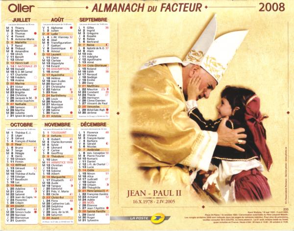 Ah, j'oubliais! Le facteur m'a dit "Je suis content". Je m'attendais à ce qu'il ajoute "Je suis croyant", ou bien "j'aimais Jean-Paul II". Devant mon air interrogateur, il a précisé: "j'avais peur qu'il ne me reste sur les bras. Personne n'en voulait...".
