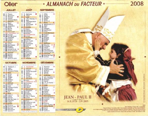 Je sais, la chute est dure, j'aurais préféré qu'il en soit autrement, et Jean-Paul II l'avait compris avant tout le monde: "France, fille aînée de l'Eglise, qu'as-tu fait des promesses de ton baptême?" Mais la remarque du facteur me semble porteuse d'espoir, car il aura finalement constaté que quelqu'un s'est réjoui de ce calendrier. Je serais très étonnée que d'autres specimen aient suscité la même réaction... A lui d'en tirer les conclusions.