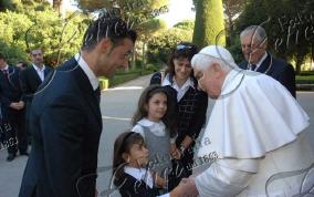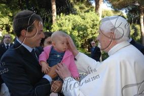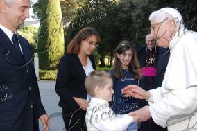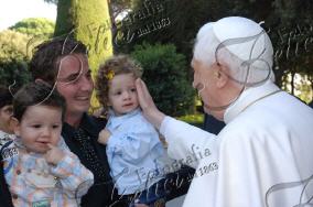 Le 1er octobre, avant de prendre congé de Castelgandolfo, le Saint-Père a rencontré dans les jardins du Palais Apostolique les employés des villas pontificales et leurs familles. Après les avoir remerciés pour leurs bons offices et leurs soins, il s'est exprimé "a braccio", se réjouissant avec une grande simplicité qu'il y ait tellement d'enfants... et les photos de Fotografia Felici (une fois de plus!) témoignent que son plaisir était justifié: ----------- "Je vous remercie encore pour tout, et je formule pour chacun de vous d'une vie heureuse et active. Avec ces sentiments, j'accorde de grand coeur à vous ici présents, ainsi qu'à vos familles - je suis heureux que tant de familles soient présentes, il y a tellement de bébés qui naissent ici!- la bénédiction apostolique, signe de ma constante bienveillance."