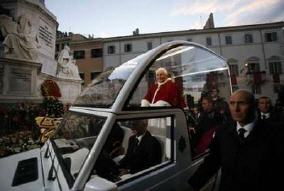 8 décembre, jour férié en Italie. Traditionnellement, le Pape se rend devant la statue de la Sainte-Vierge, Place d'Espagne. C'était la troisième fois depuis qu'il est Pape, la foule semblait immense, et pour la première fois, il a utilisé la 'papamobile', plutôt que l'habituelle limousine.