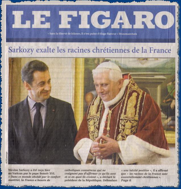 Sarkozy fait le voyage au Vatican "La république est la fille aînée de l'Eglise"!! - Le Figaro, 19/12/2007