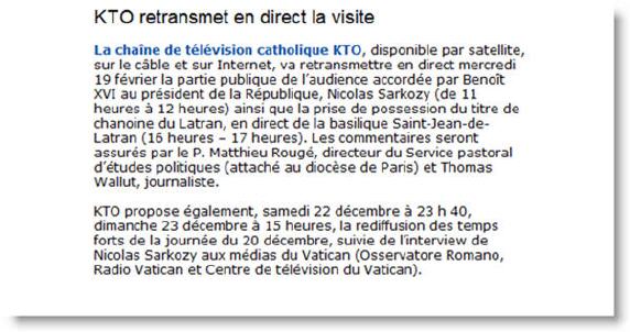Sarkozy et "le plan de Dieu" Les français auront au moins un peu vu le pape.