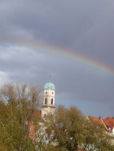 L'arc-en-ciel de Ratisbonne --------------------- Vous rappelez-vous de l´arc-en-ciel d´Auschwitz ? Regardez : en sortant, nous sommes allés sur "le pont de Ratisbonne"... N´est-ce pas un signe ! Mon Dieu faites que je LE/les revoie... C´est pourquoi je vous dis : -"A bientôt...". Michelle.