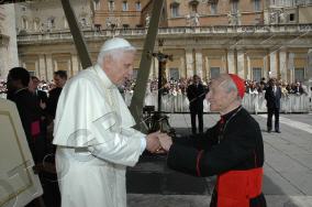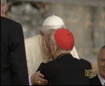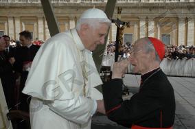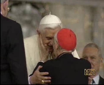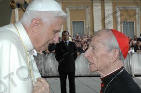 Toute sa personne irradie la gentillesse, la simplicité et la sérénité. Sa complicité avec le Saint-Père saute aux yeux. ------------------ Le Cardinal Tonini avait pris vigoureusement parti en faveur du célibat des prêtres, et avait exprimé sa tristesse lorsque l'Abbé Pierre, instrumentalisé par une certaine frange progressite, avait confié à la plume de Frédéric Lenoir (Le Monde des Religions) le soin de régler ses comptes avec Dieu, en confessant ses coups de canif au voeu de chasteté. Ci-dessous, un extrait d'une interview (non traduite, mais très facile à lire) publiée par l'hebdomadaire Panorama. ----------------------