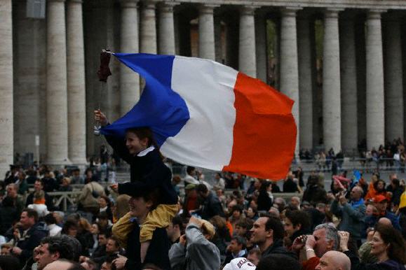 Sheelagh m'a envoyée une série de photos sur le 19 avril 2005, la plupart m'étaient connues, mais pas toutes. Comme ce profil souriant et ému... et ces petites manches noires désormais mythiques. Cette image du drapeau français, Place Saint-Pierre, et celle de Rupert Hofbauer dans le jardin de la maison de Pentling, polissant la fameuse statue de bronze de Christian Stadler représentant la Sainte-Vierge abritant sous son manteau trois humains qui pourraient représenter Maria, Georg et Joseph Ratzinger. Et les coupures de journaux