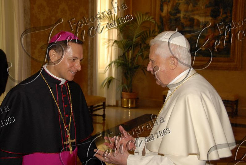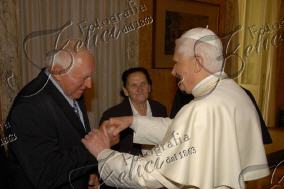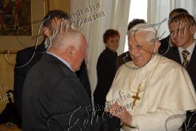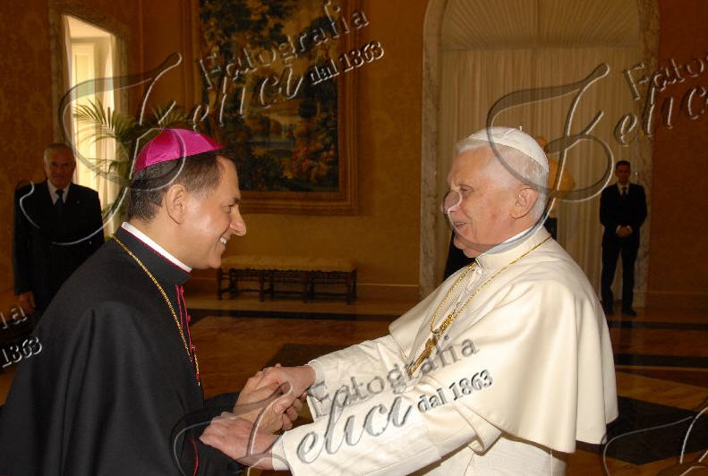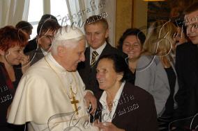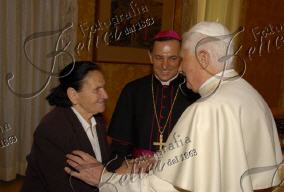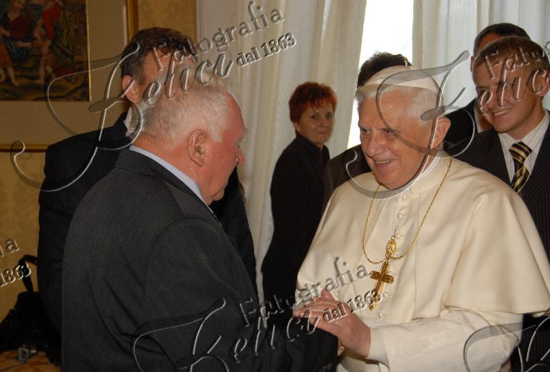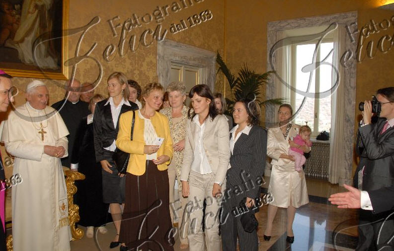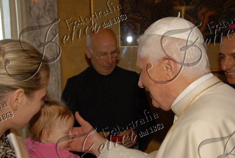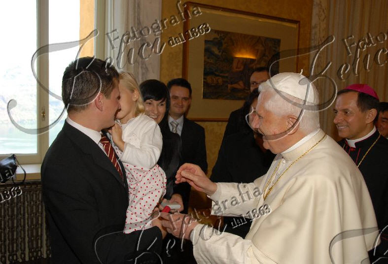Décidément, l'agence FOTOGRAFIA FELICI réalise, discrètement et à l'écart des grandes agences de presse, les plus formidables des reportages. Par exemple, cette série de photos non légendées, nous permet de vivre une belle fête de famille, presque comme si on y était. Cela se passe juste après l'Angelus du 30 septembre, à Castelgandolfo. La veille, "Don Mietek" a reçu l'ordination épiscopale des mains du Saint-Père. Là, on devine que sa nombreuse famille a été reçue en audience privée au palais Apostolique, par le Pape. Il faut observer attentivement les expressions, les gestes, les attitudes. L'émotion profonde des parents, la gentillesse affectueuse du Saint-Père, le sourire du jeune évêque. Une vraie fête de la joie partagée, sans protocole, dans la simplicité et la cordialité.. Il est très facile d'imaginer les dialogues qui se sont échangés, jusqu'à la photo de groupe finale, dans un joyeux désordre guère protocolaire...