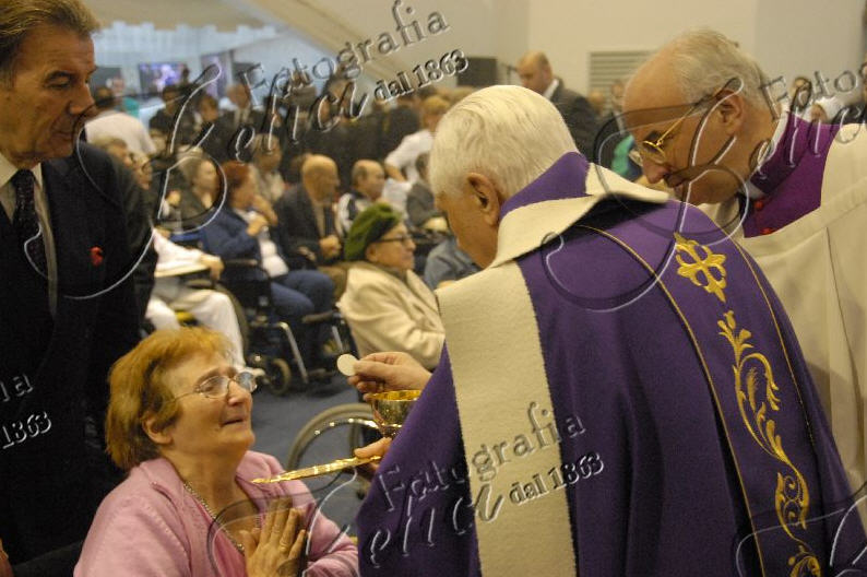C'était au moment de la communion, dimanche 2 décembre, lors de la messe célébrée par Benoît XVI à l'Hôpital Saint-Jean Baptiste, de l'Ordre de Malte, un établissement spécialisé dans le soin des malades atteints de traumatisme crânien, je crois.