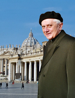 "Ratzinger était d'une douceur rare : il ne se lassait jamais d'essayer les vêtements, il avait toujours un mot gentil pour mes enfants et ma femme. Et c'est chez moi qu'il achetait le célèbre béret basque: tenez, le voilà ". Et d'une petit armoire, il sort le couvre-chef original de celui qui était alors Mgr Ratzinger. "Il est de marque italienne, il porte la taille 58". Cela ressemble vraiment à un conte. "Pensez que pour les messes, dans sa maison de la place de la Cité Léonine, je lui fournissais aussi un vin sicilien de Mazara del Vallo, et les hosties que me préparaient les soeurs napolitaines de la Via Aurelia, qu'il bénissait". Et il me montre les bouteilles et un sachet de plastique avec les hosties. "Je ne l'ai jamais dit, mais devenu Pape, peu de mois après, il m'a invité avec ma femme à la messe du matin dans sa chapelle. "Vous voyez comme la vie change?", a-t'il dit en souriant à ma femme ".