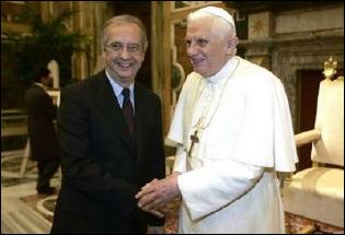 Ce 10 janvier, Benoît XVI a reçu les voeux des représentants de la ville de Rome, de la province du Latium, et de la Région. La situation est très semblable à celle de la France, l'optimisme de la classe politique aussi, et jusqu'à leur discours (on observera avec amusement que le maire de gauche Walter Veltroni y a été, de son petit couplet sur la " civilisation de paix", qui évoque furieusement la "politique de civilisation" de notre nouveau penseur national). Le Pape, évidemment, n'énonce pas de formules aussi creuses. Il dit, avec des mots simples, des choses belles et concrètes, se préoccupant vraiment, avec sensibilité et humanité, du sort des gens. C'est, en substance, ce qu'il avait déjà dit en juin dernier lors de la Rencontre Ecclésiale avec le Diocèse de Rome, évoquant encore l'urgence éducative, la perte des repères (le rôle des medias), et la place de la famille.