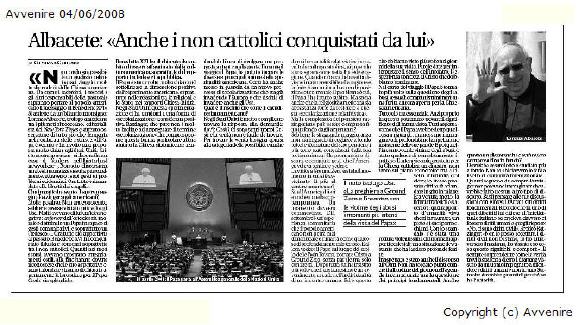 Les non-catholiques ont aussi été conquis. Une interviewe de Mgr Albacete, un thélogien américain, dans l'Avvenire du 4 juin (7/6/2008)