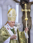 D'un crucifix plus petit que celui qui le portait à une croix plus grande que lui. Comme pour dire : regardez-la et pas moi. D'un crucifix post-moderne à une croix de la tradition. Parce que la « Una, Sancta Catholica » parle toutes les langues.