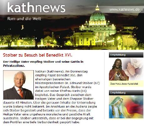 Jeudi, Edmund Stoiber, ex-ministre président (CSU) du land de Bavière, accompagné de son épouse Karin, était reçu en audience chez le saint-Père.
