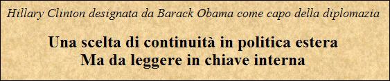Hillary Clinton designata da Barack Obama come capo della diplomazia