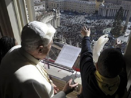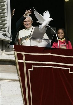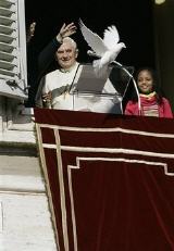 Avec une grande simplicité, après l'Angélus, Benoît XVI a cédé le micro à une petite fille de l'Action Catholique de Rome, montée dans son bureau pour libérer avec lui les colombes de la paix.