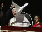 Ensuite, après les saluts dans les autres langues, Benoît XVI a demandé à deux enfants de libérer les colombes en signe de paix : « Voyons comment faire », a t’il plaisanté.